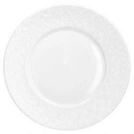 Todas as peças desta linha são feitas em porcelana branca de qualidade, com uma delicada decoração em relevo.