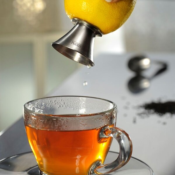 Permite que o sumo de limão seja doseado perfeitamente. Basta enroscar o espremedor no limão e espremer conforme necessário, sem sujar. Também adequado para limas e laranjas.
