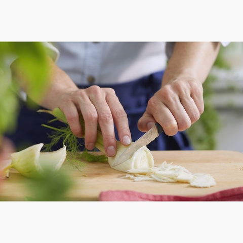 Os cabos das facas de cozinha da coleção Essentiels + são feitos de polímero de alta qualidade. Eles são resistentes à água, produtos químicos e calor.