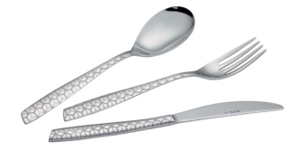 Eleven é uma série de talheres adequados para ambientes jovens que exigem originalidade em sua mesa, não só em ocasiões especiais, mas também na vida quotidiana. Apresenta linhas com um design contemporâneo e moderno que são particularmente reconhecíveis na redondeza suave das colheres. O cabo é tornado agradável pelos traços harmoniosos e o corte oblíquo no final das alças que distingue esta série. Os talheres são feitos de aço 18/10 de 2,5mm de espessura. O Eleven Exa distingue-se pelo design sofisticado feito de laser de duas cores de alta tecnologia que cria um efeito tridimensional.