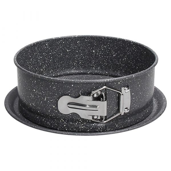 O corpo é feito de aço carbono com revestimento externo resistente a altas temperaturas e revestimento interno antiaderente de 4 camadas com efeito pedra. A forma com mola Pure Roq é resistente e de alta qualidade, também é adequada para lavar na máquina de lavar louça.