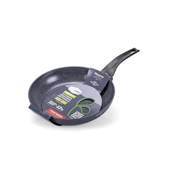 Revestimento antiaderente Finegres com efeito pedra: um revestimento antiaderente natural inovador, isento de PFAS, PTFE, PFOA, níquel e metais pesados. É resistente aos riscos e ao uso intensivo. A sua elevada eficiência energética permite uma transmissão de calor mais rápida, poupando tempo e energia. Agora com uma nova fórmula, ainda mais antiaderente.