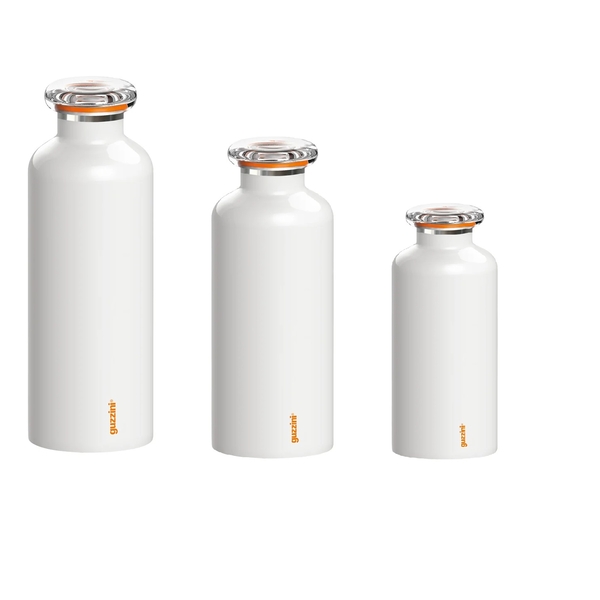 Garrafa térmica em inox, cor branco, da Guzzini.