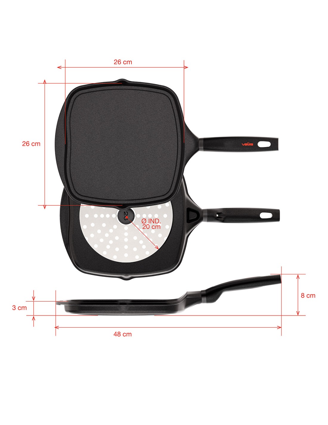 Grelhador com cabo Origen indução Valira
