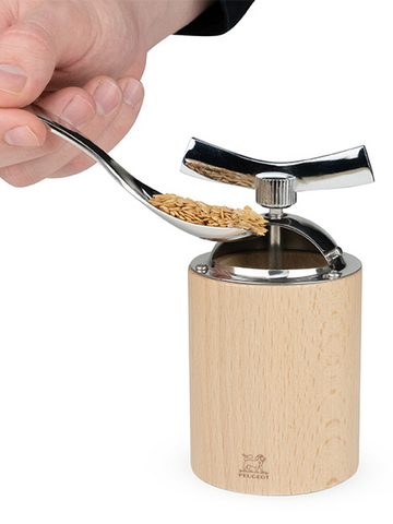 As sementes de linhaça são ótimos alimentos conhecidos por seus benefícios à saúde. A única condição para usufruir de todos os seus benefícios: triturá-los porque o seu invólucro não é assimilável pelo nosso corpo e no último minuto evitar que fiquem rançosos! O moinho de linhaça Peugeot é uma verdadeira inovação. O mecanismo deste moinho está especialmente desenhado para moer sementes, adaptando-se à sua consistência e dureza. Seu mecanismo é totalmente removível para uma limpeza rápida e perfeita. Seu design, que combina aço inoxidável e madeira (das brocas de Franche-Comté), torna-o um instrumento magnífico. O moinho vem acompanhado de uma colher de inox (dosagem de 5 gr.) E uma escova de limpeza. Polvilhe e aprecie essas sementes de linhaça moídas na hora em suas sopas e saladas.
