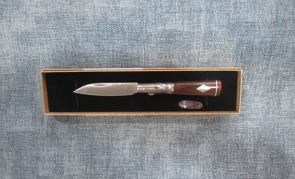 Faca artesanal de Astúrias, feita manualmente pelo mestre artesão Carlos Quintana, assinada CQ na lâmina de 8 cm com Trava.