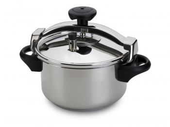 Panela de pressão em aço inox sem cesto interno. Modelo tradicional.