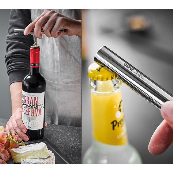 Saca-rolhas e caricas em aço inox Siseo da Gefu.