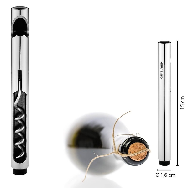 • Função 2 em 1: saca-rolhas e abridor de garrafas.