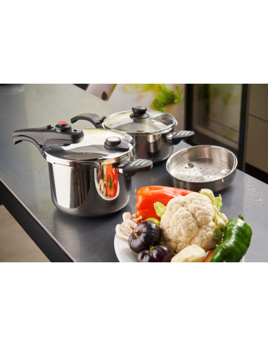 Inclui o livro de receitas de David De Jorge, com ideias saudáveis ​​e atuais para cozinhar sob pressão. Adequado para todos as fontes de calor incluindo indução.