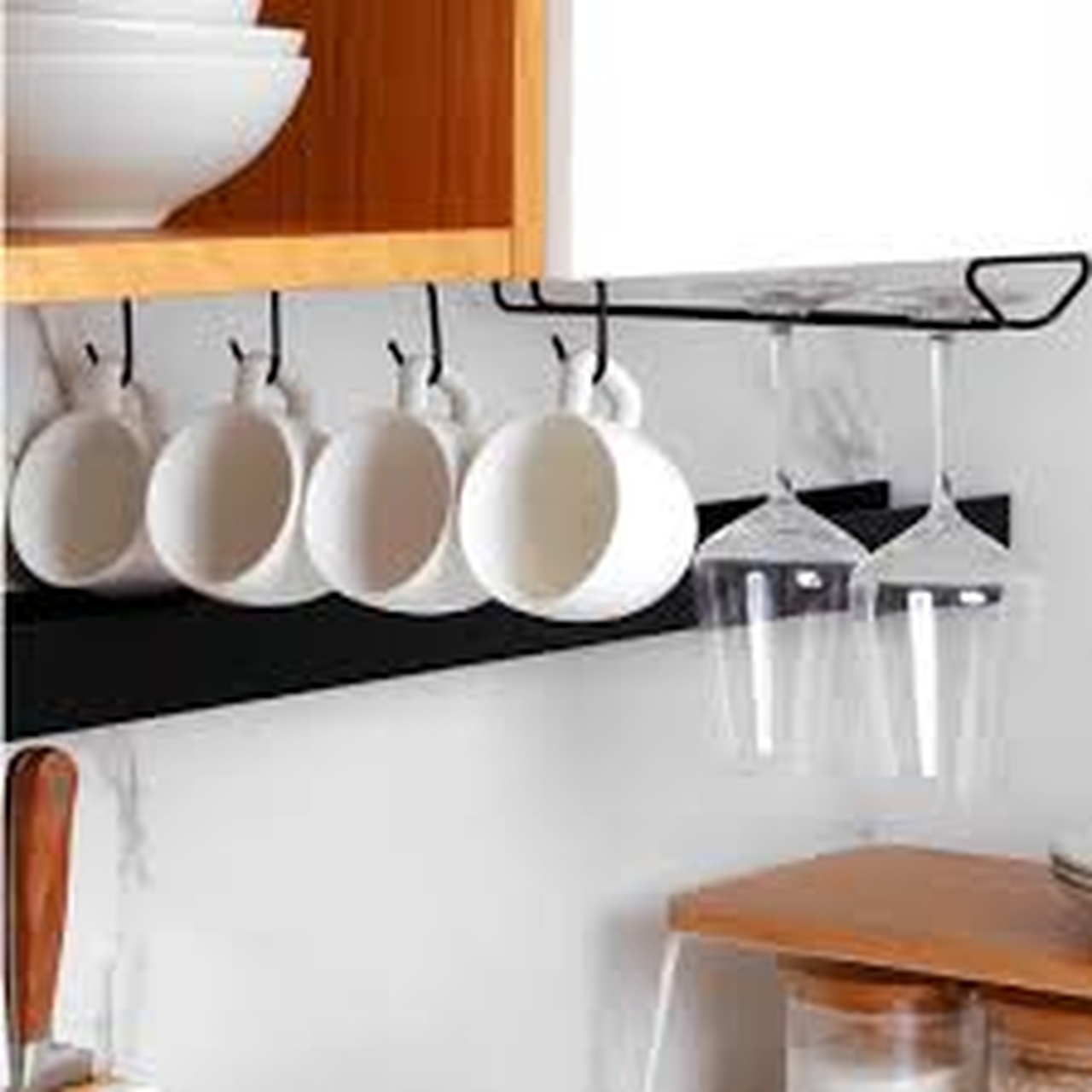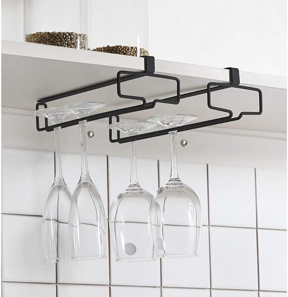 Excelente para guardar de fora organizada e recolher confortavelmente copos de vinho e outros copos com pé, poupando espaço na cozinha. O suporte pode ser facilmente empurrado na prateleira do armário da cozinha. Fabricado em metal de alta qualidade com tratamento de superfície durável e plástico. 3 anos de garantia.