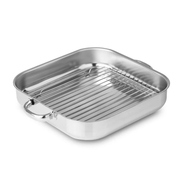 Price: 44,20€ SKU: TAB27C In stock: 4 Product Categories: Assadeiras, Silampos Product Page: https://vianainox.com/produto/tabuleiro-c-asas-c-grelha-27x27-cm-silampos/