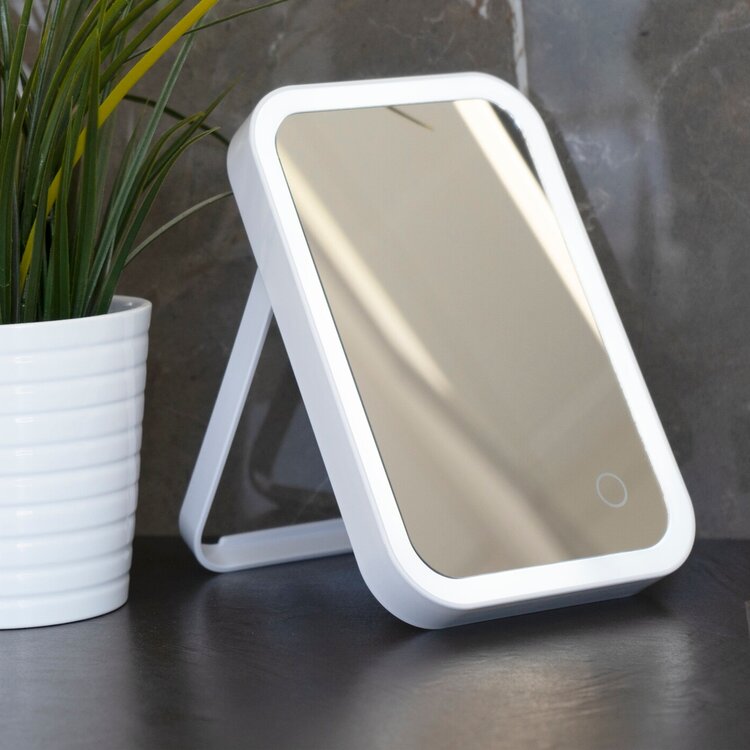 Espelho portátil de luz LED em polipropileno, portátil graças a baterias ou alimentado por cabo USB. Ideal para viagens, mas também para organizar a casa de banho.